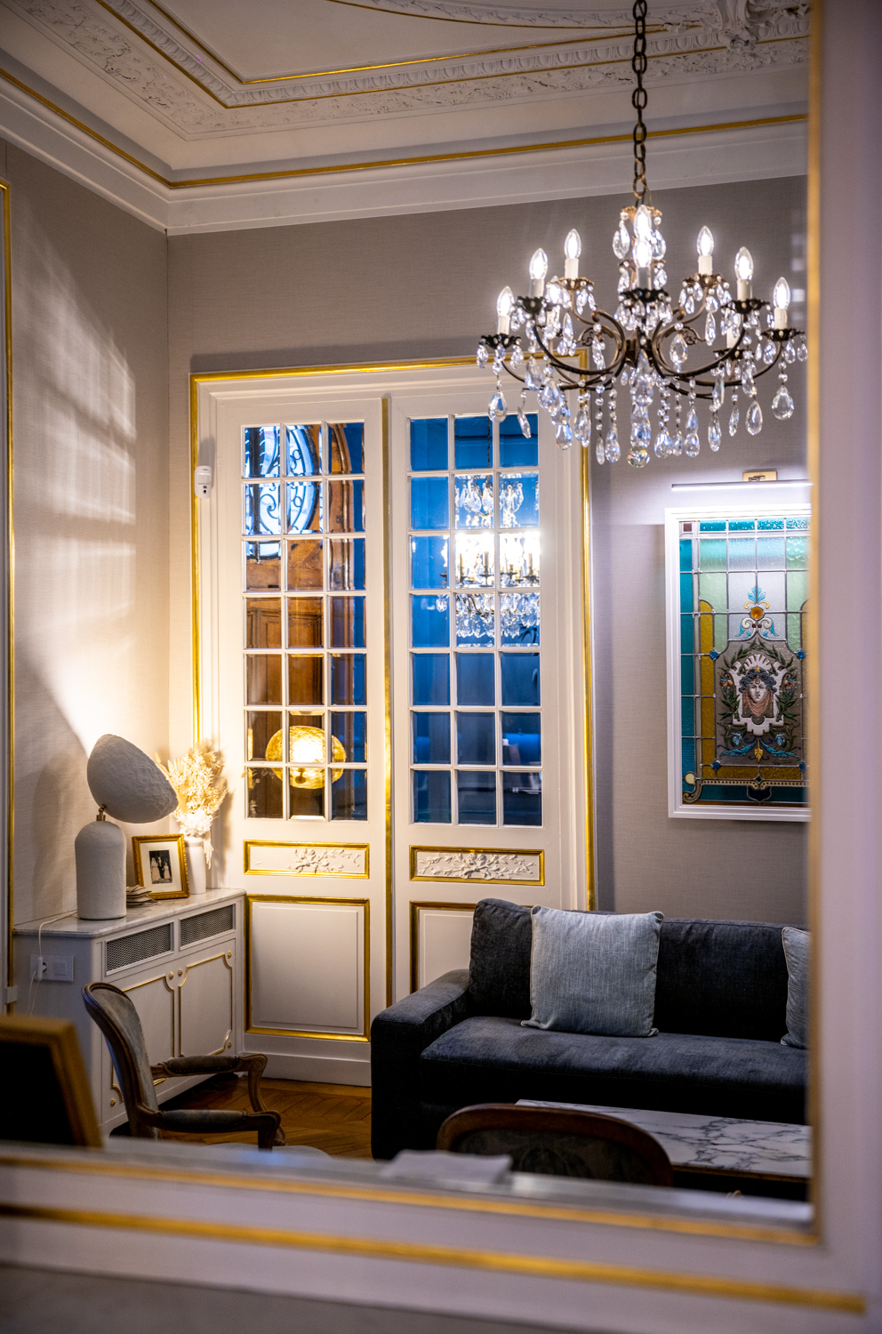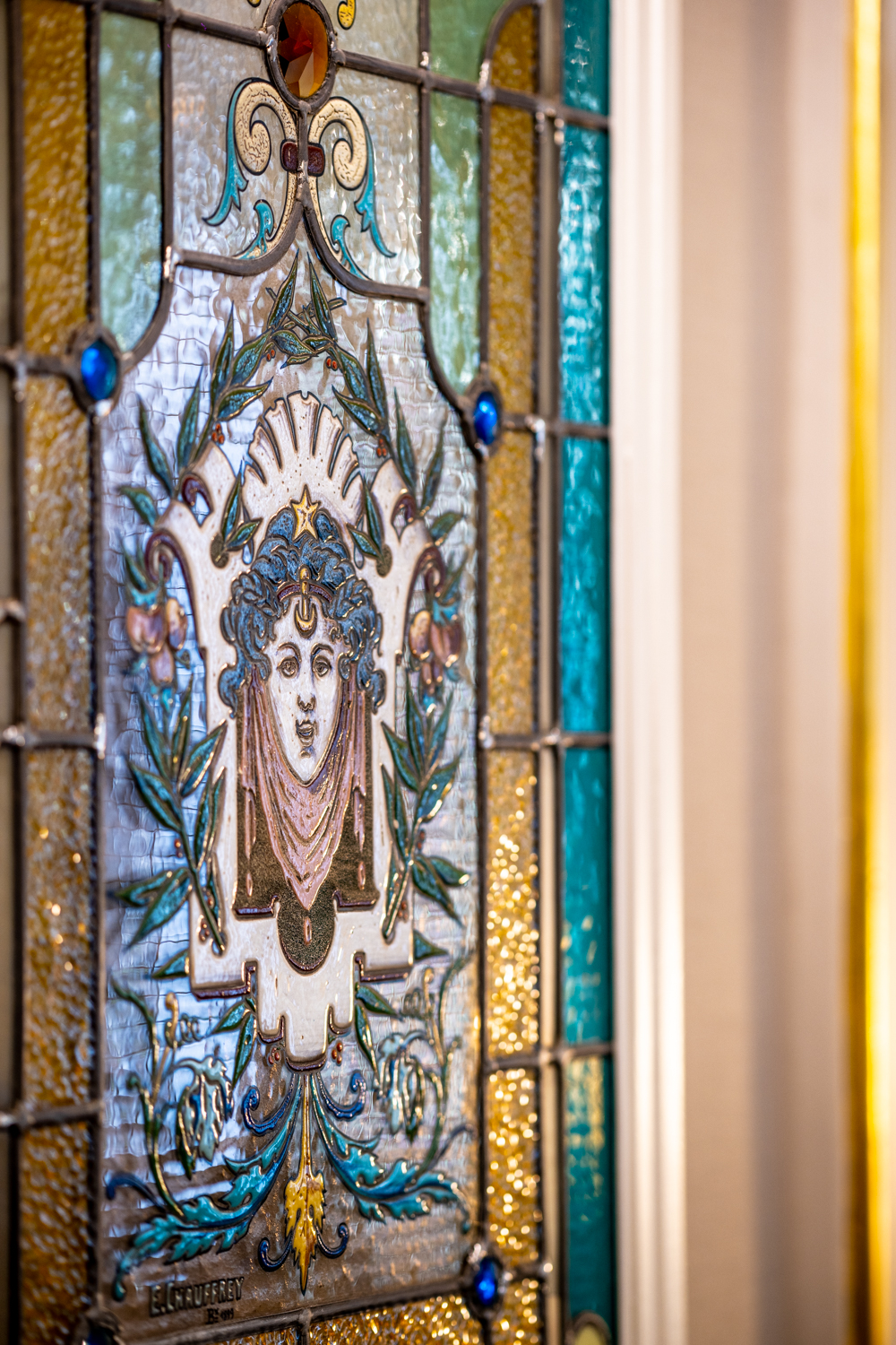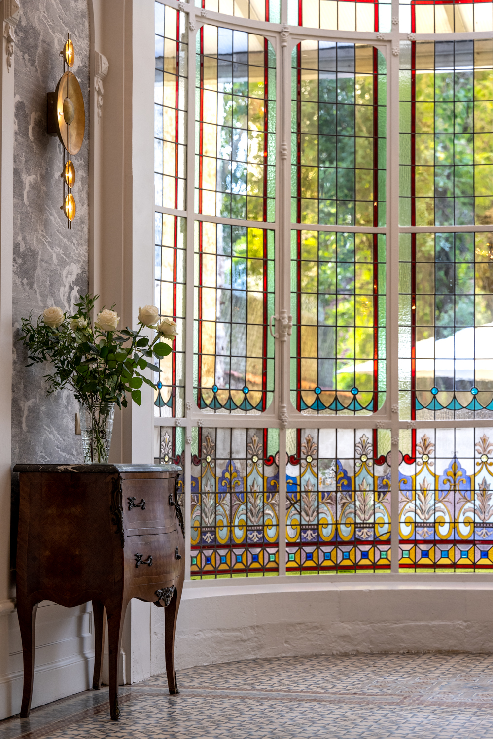 Plus qu’une simple rénovation, ce lieu événementiel est le fruit d’une collaboration passionnée avec des artisans d’art d’exception, tels que le peintre décorateur Vincent Cigana et le maître verrier Fabrice Laval.