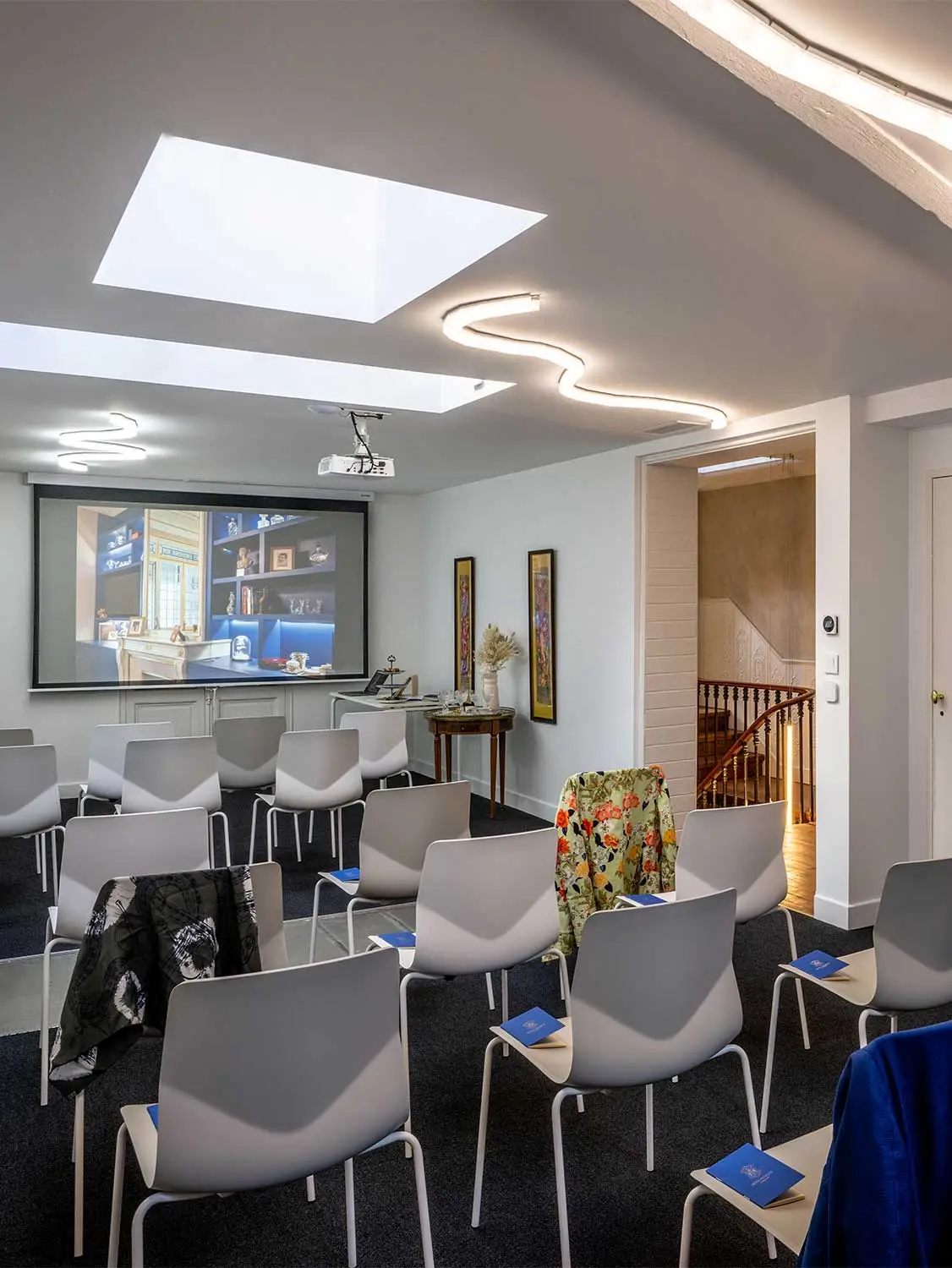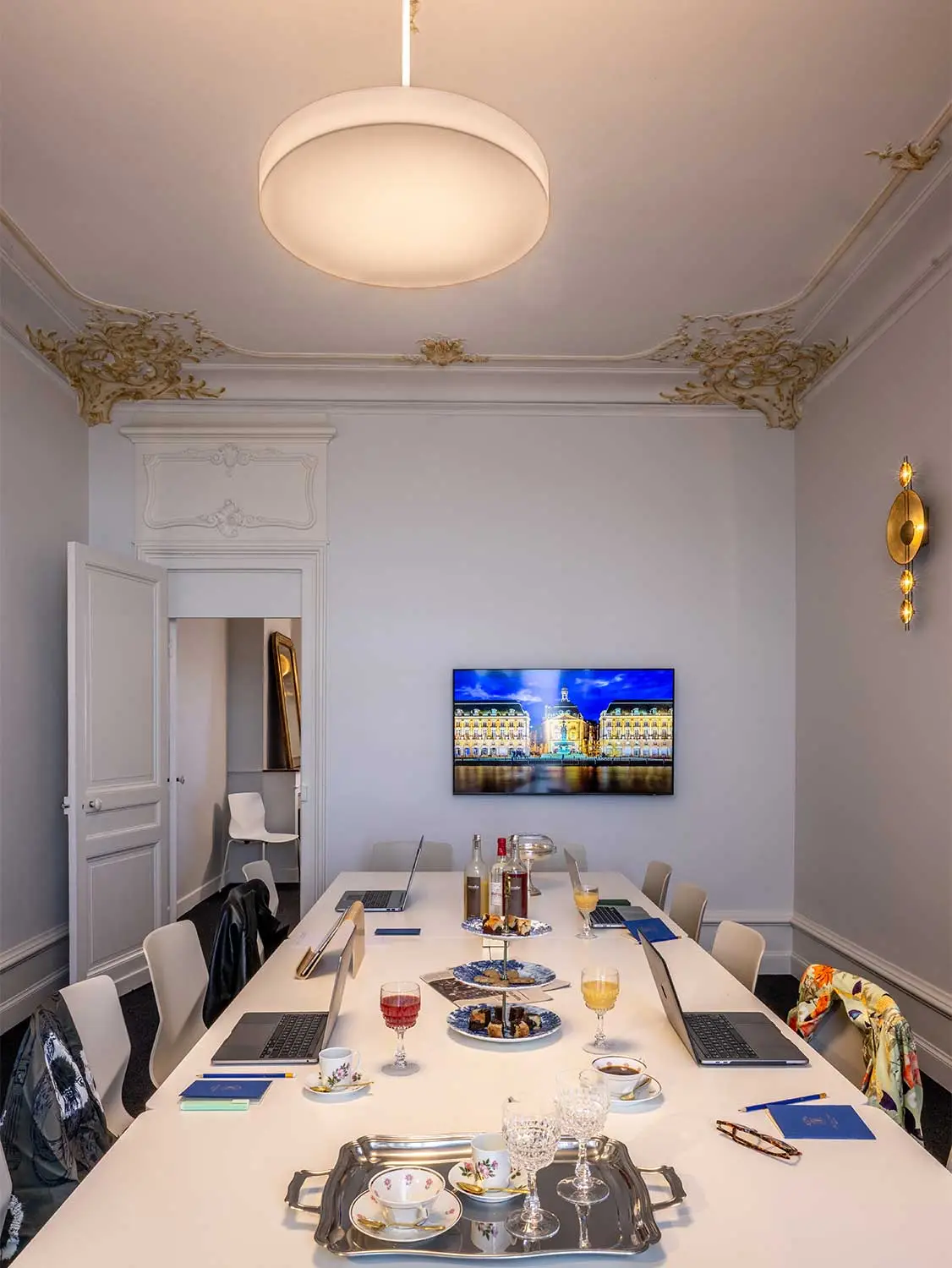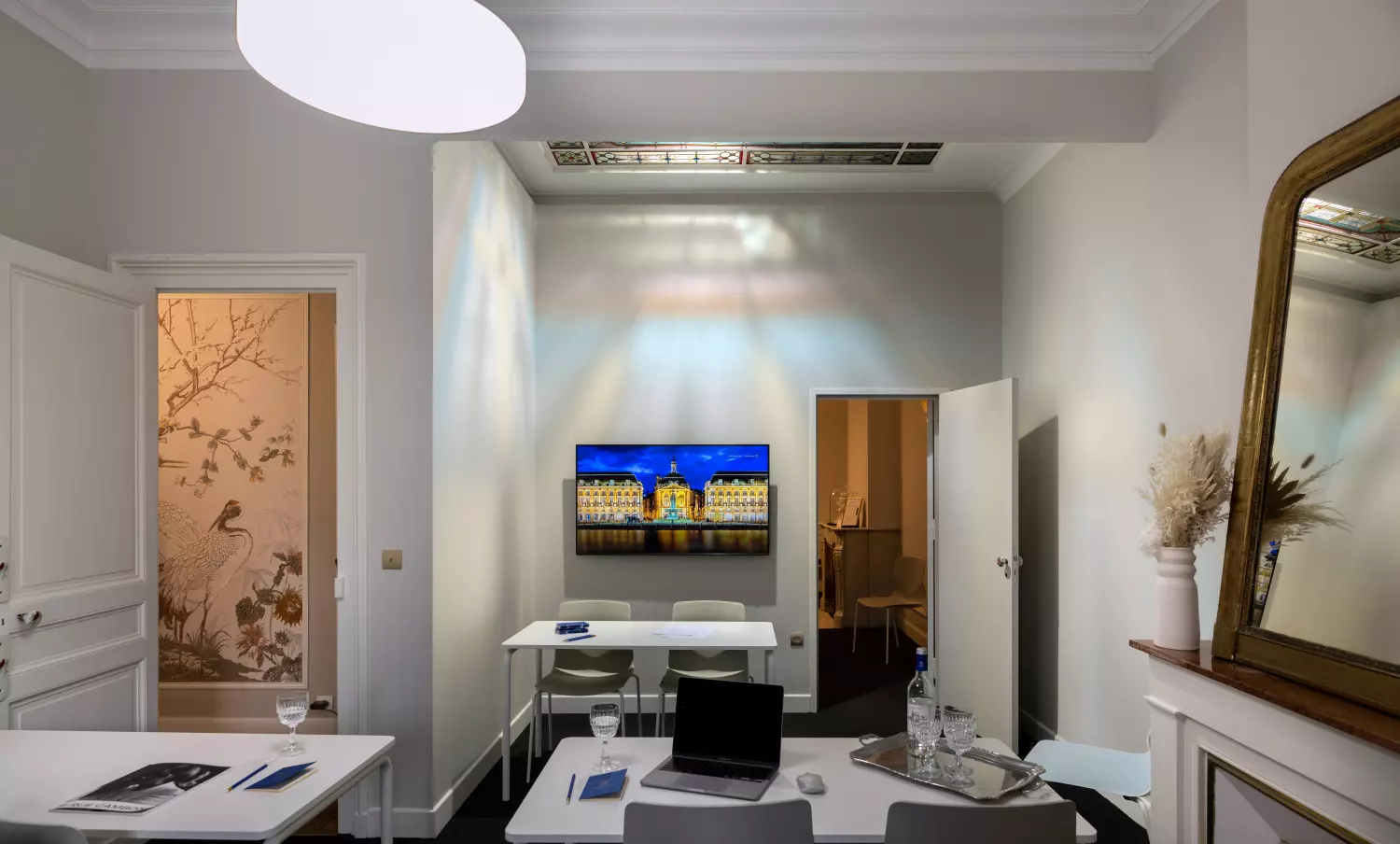 Plus qu’une simple rénovation, ce lieu événementiel est le fruit d’une collaboration passionnée avec des artisans d’art d’exception, tels que le peintre décorateur Vincent Cigana et le maître verrier Fabrice Laval.