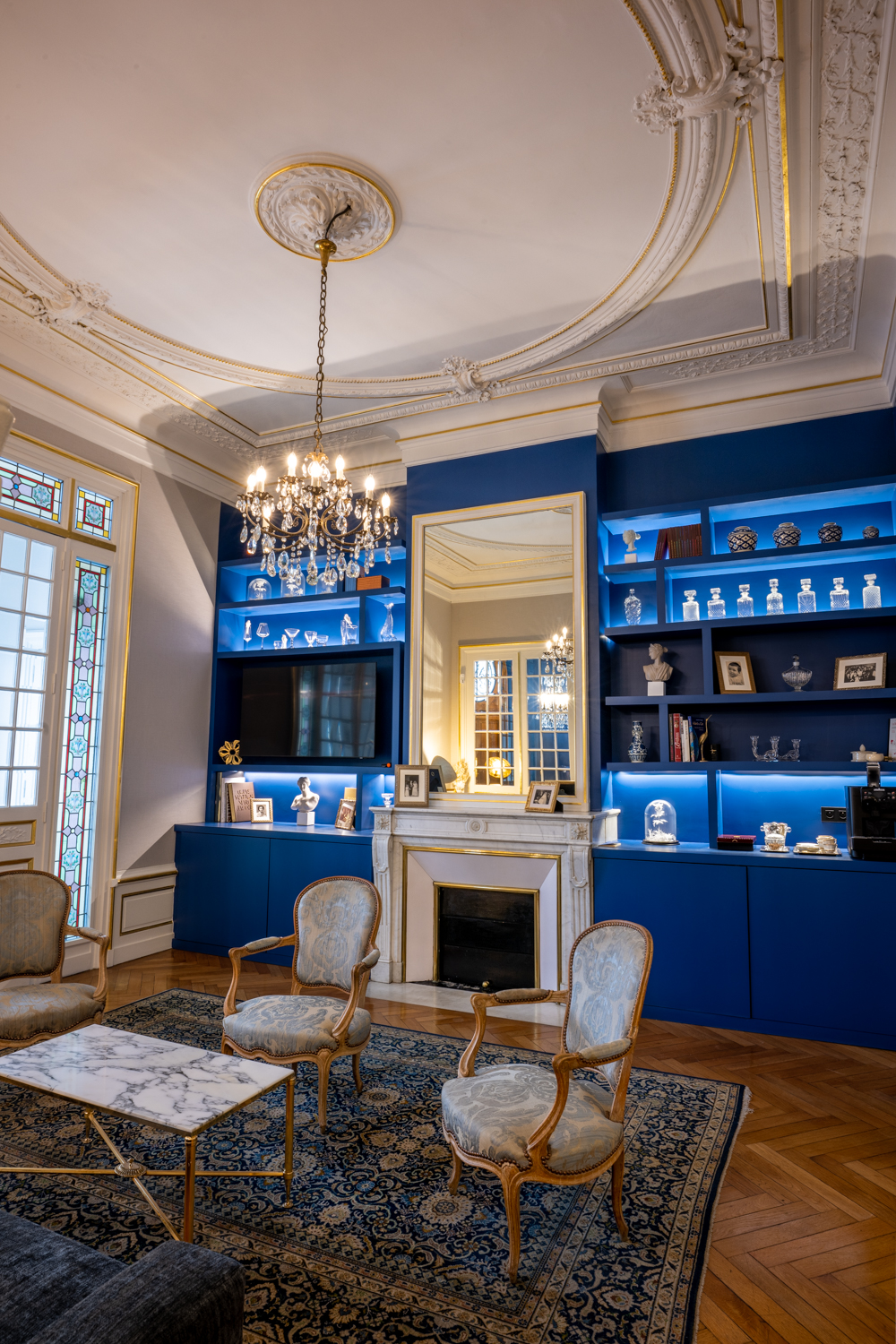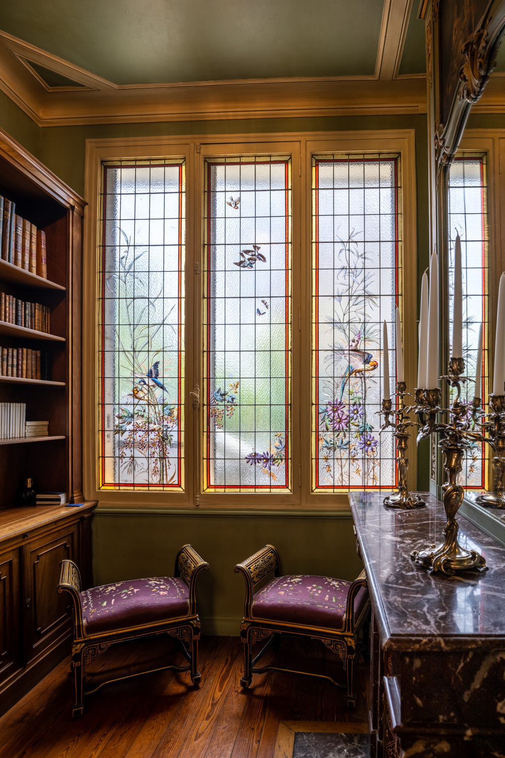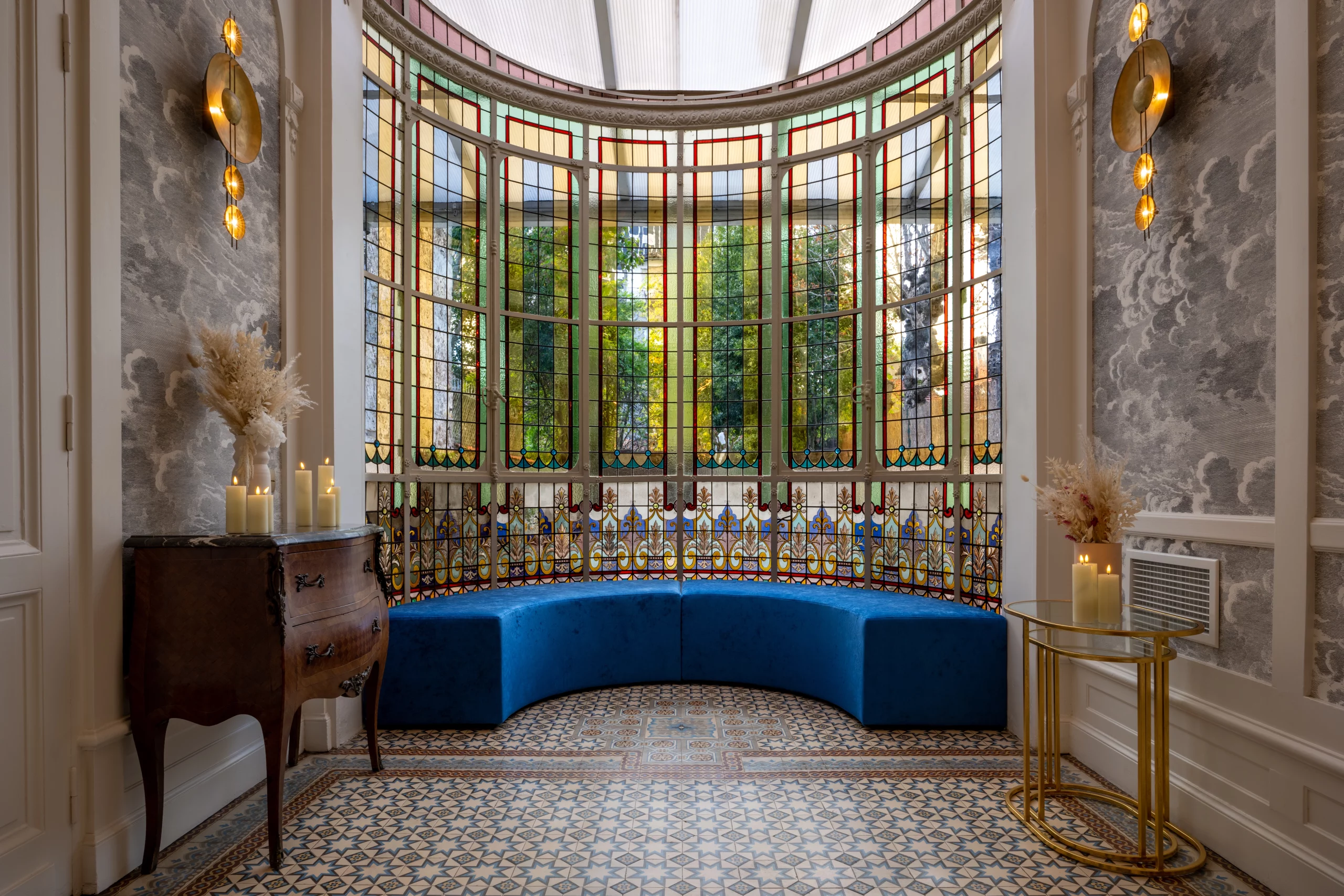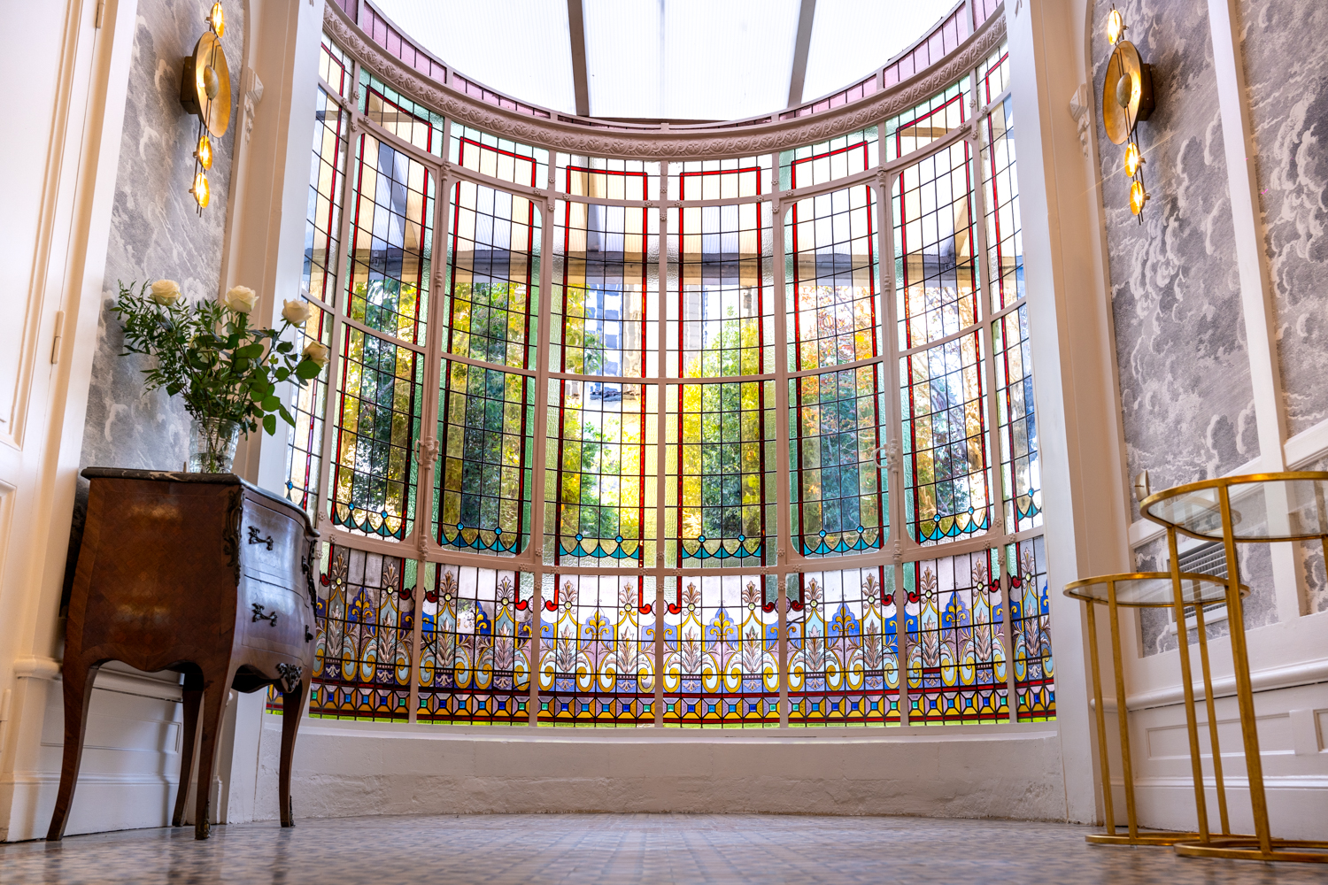 Des vitraux historiques restaurés aux pigments naturels créés sur mesure, chaque détail célèbre le patrimoine du XIXe siècle tout en l’inscrivant dans une modernité audacieuse.