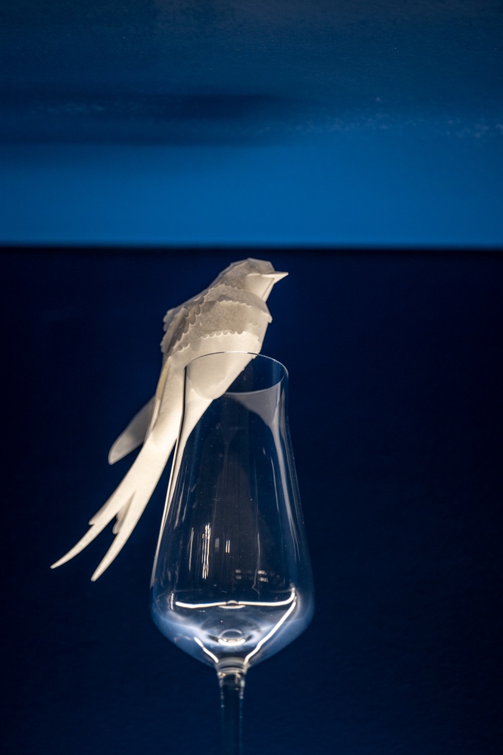 L’architecture de la maison (ses vitraux, ses jeux de lumière, ses volumes) crée naturellement une atmosphère de recueillement. Pas besoin de décor funéraire ou de mise en scène : le lieu se suffit à lui-même.